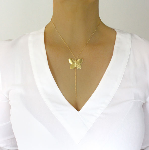 When your outfit calls for a special piece to create a stylish on-trend look, this fashionable Y-necklace, is the perfect choice. Handmade with a stunning 18K gold plated butterfly beautifull centered on dazzling chains, this necklace is a true showstopper and a great gift for special moments.