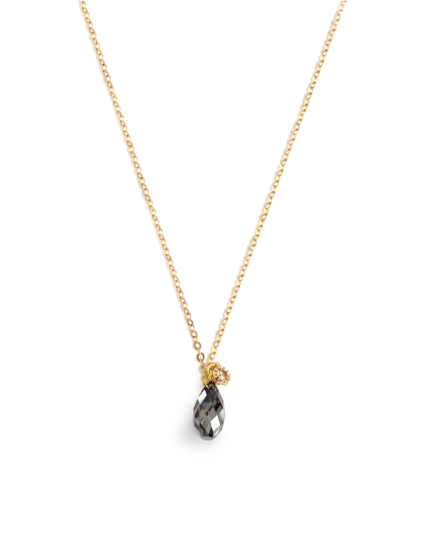 Short 18K gold plated necklace with Black Diamond crystal drop and charm