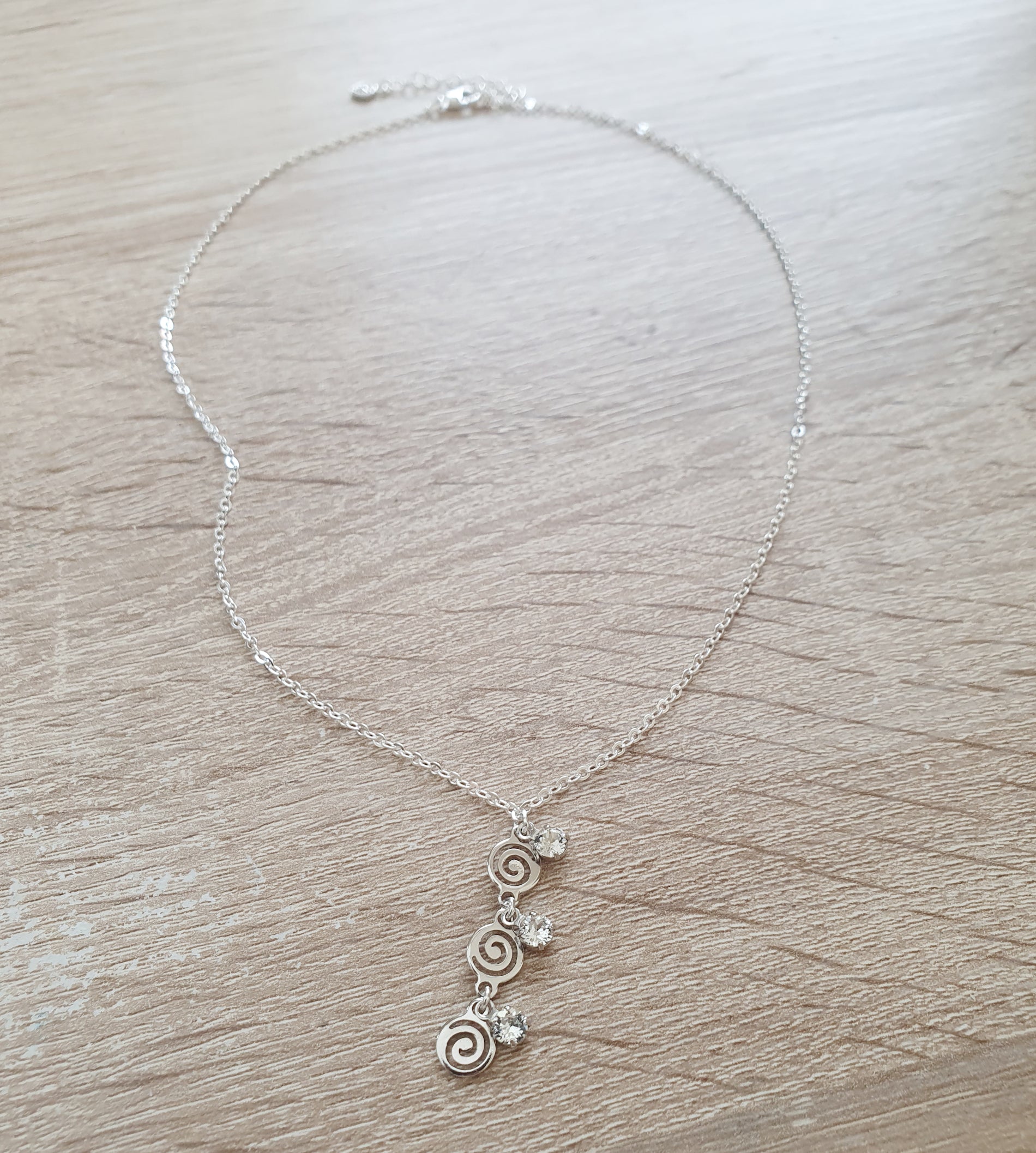 Short triple-swirl coin necklace with Austrian zirconia